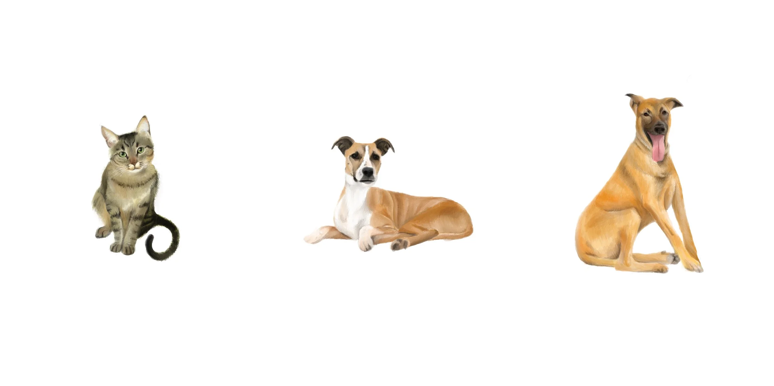 Digital and realistic pet portraits made for print or screen. Made to order.